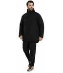 * 100% breathable polyester with DWR and PU coating * Shell fabric features 9,000MM fabric waterproof rating 2,000G/M2 fabric breathability rating * Stain resistant * Heat sealed label * High collar, full-zip with hook-and-loop neck closure * Hood with inside adjustable shockcord closure * Sealed seams for protection from rain * Raglan sleeves * Front zippered pockets with waterproof coating * Open bottom with snap closure * Dropped tail bottom * Water-resistant * Waterproof