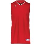 92% polyester/8% spandex (white) * 92% nylon/8% spandex (color) * Dri-Power(r) Moisture Wicking Technology * Updated tailored fit * Tag-free label * Outside locker label * V-neck collar * Contrast color inserts * Designed to be NFHS compliant