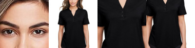4 oz./yd² (US), 6.7 oz./L yd (CA), 100% recycled polyester embossed print interlock Moisture-wicking Anti-microbial performance Partial-open henley with metal two-snap closure Side vents Hi-low hemline