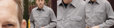 65% polyester, 35% cotton; Visa® moisture-wicking and stain-release finish; Generous fit across shoulders; Long-sleeves, extra-long tail and 20-line melamine buttons; Two chest pockets and two-button cuffs for a custom fit; Dickies logo patch at bottom of placket; Shirt colors match Dickies traditional work pants;