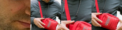- O icons at shoulder strap and top side pocket