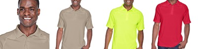 100% polyester wicking knit; 92% polyester, 8% spandex wicking pinhole mesh underarms; Color secure technology helps prevent dye migration; Contrast color inserts; Raglan sleeves; Longer length, shirt stays tucked in; Tagless label;