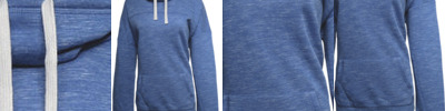 9.25 oz., 60% cotton, 40% polyester enzyme washed fleece; Yarn dyed rib trim on shoulders; Set-in sleeves & pouch pocket;
