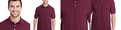 6.5 oz., 100% Ringspun Cotton Pique; Made with sustainably sourced USA grown cotton; Athletic Heather: 90% cotton, 10% polyester; Tagless label for added comfort; Welt knit collar that resists curling; 1x1 rib sleeve bands ; Two-button placket with bottom box-stitch reinforcement; Wood-tone buttons with durable cross-stitching; Two-needle hemmed bottom; Companion to style 443m;