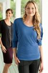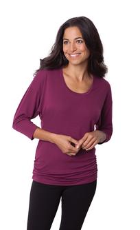 With a flattering fit for all body types, this amazingly soft top has a drop shoulder with dolman sleeves and soft gathers at the hip.